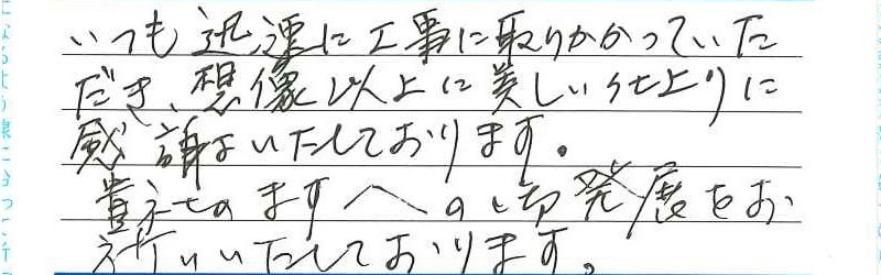 いつも迅速に工事に取り掛かっていただき想像以上に美しい仕上がりに感謝いたしております。