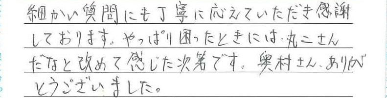 細かい質問にも丁寧に応えていただき感謝しております。