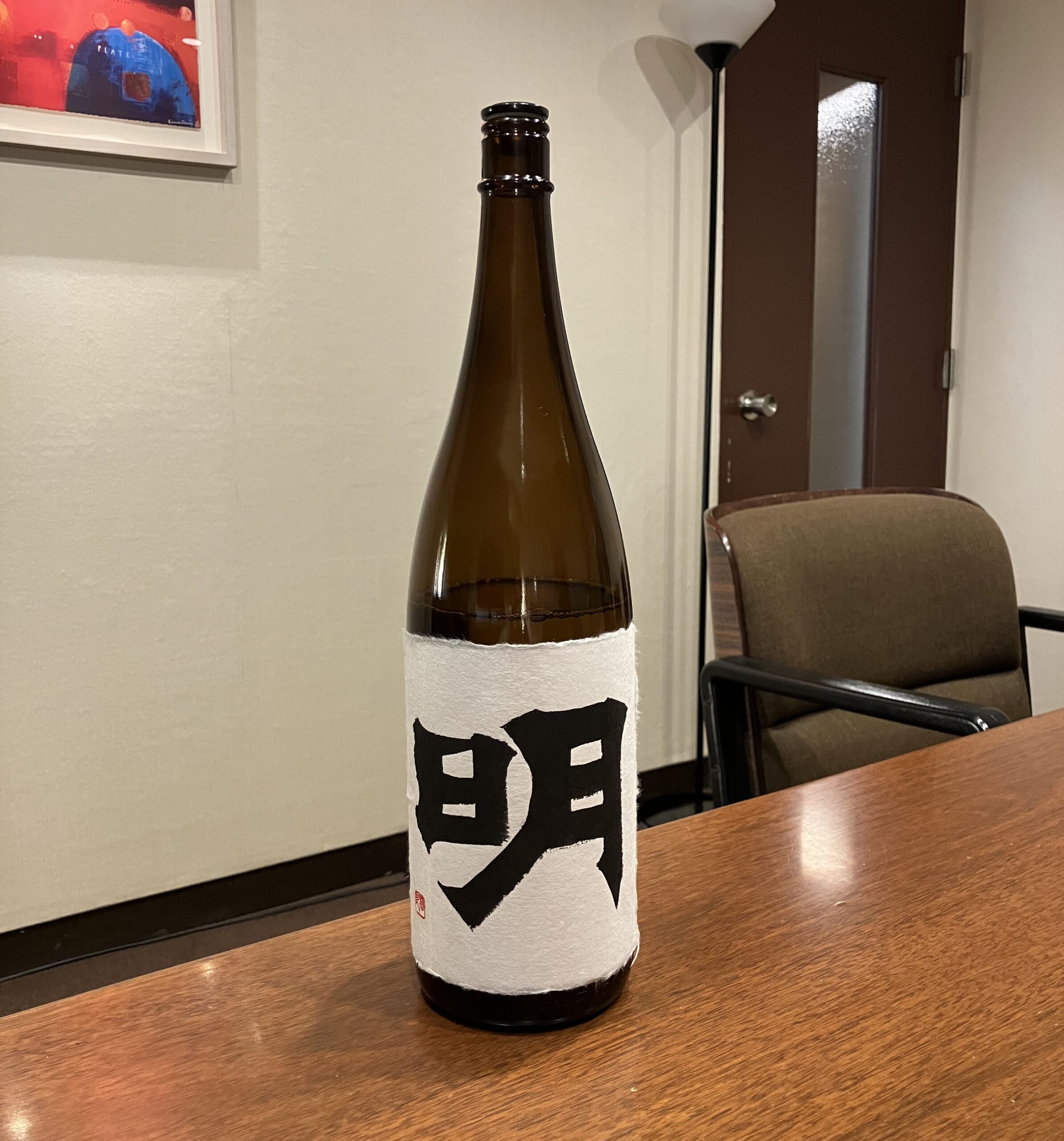 乾杯は、創立記念に合わせて用意された祝い酒「明」で。