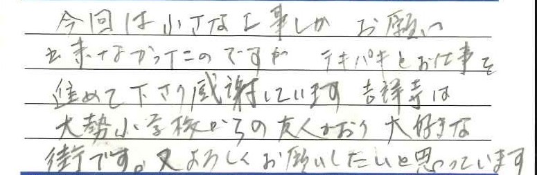 吉祥寺は大勢小学校からの友人がおり大好きな街です。又よろしくお願いしたいと思っています。