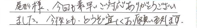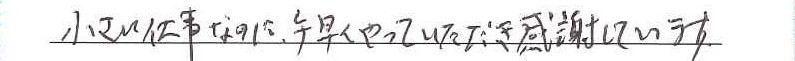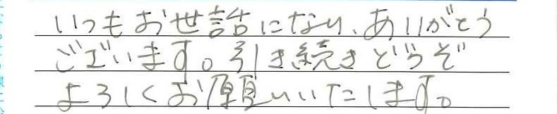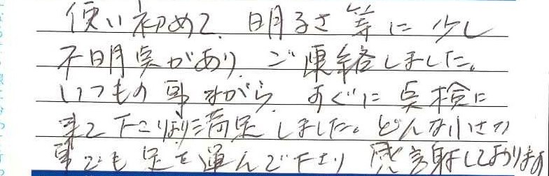 いつもの事ながらすぐに点検に来て下さりより満足しました。