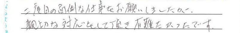 二度目の面倒な仕事をお願いしましたが親切な対応をして頂き有難かったです。