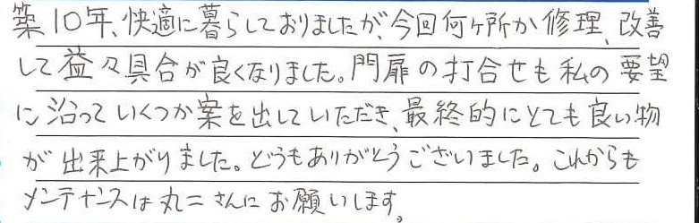 築10年、快適に暮らしておりましたが、今回何か所か修理・改善して益々具合が良くなりました。