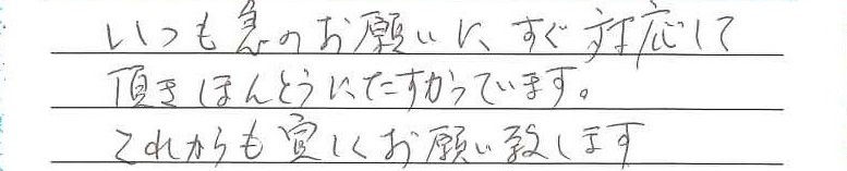 いつも急のお願いにすぐ対応して頂きほんとうにたすかっています。