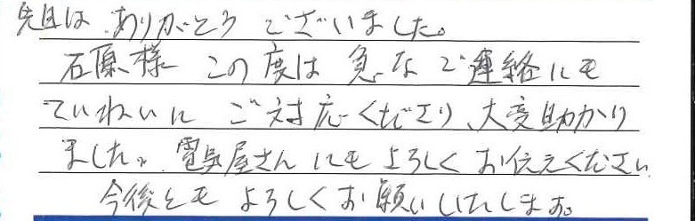 石原様この度は急なご連絡にもていねいにご対応くださり大変助かりました。