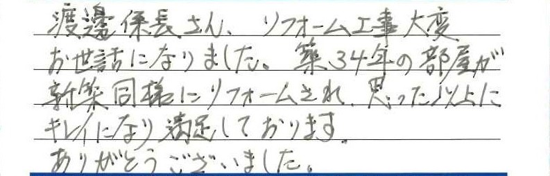 渡邊係長さんリフォーム工事大変お世話になりました。
