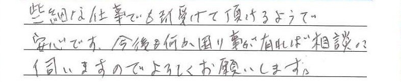 今後も何か困り事が有れば相談に伺いますのでよろしくお願いします。