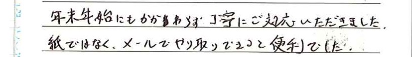 年末年始にもかかわらず丁寧にご対応いただきました。