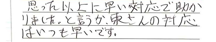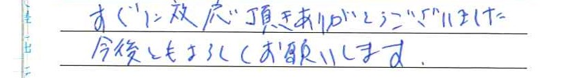 すぐに対応頂きありがとうございました。今後ともよろしくお願いします。