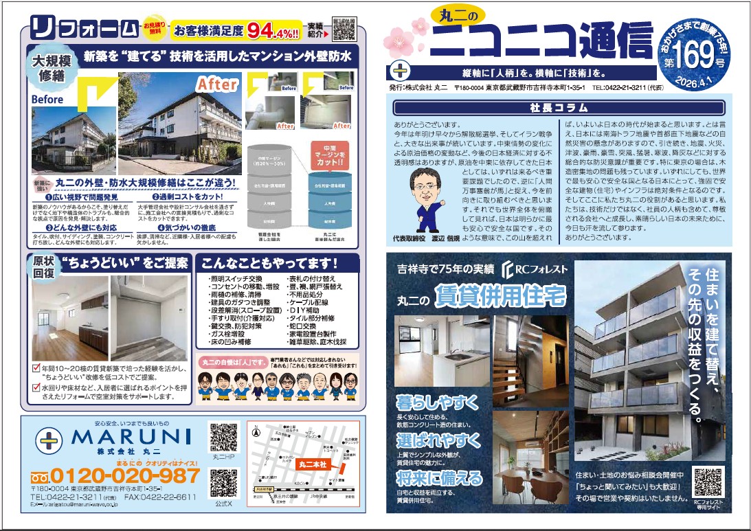 このたび、丸二の広報誌「ニコニコ通信」最新号(第169号)を発行いたしました!