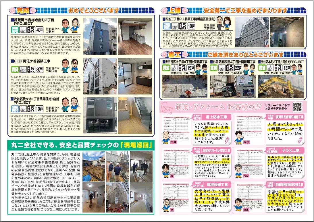 また、丸二全体で取り組んでいる「現場巡回(安全・品質チェック)」の様子も掲載。